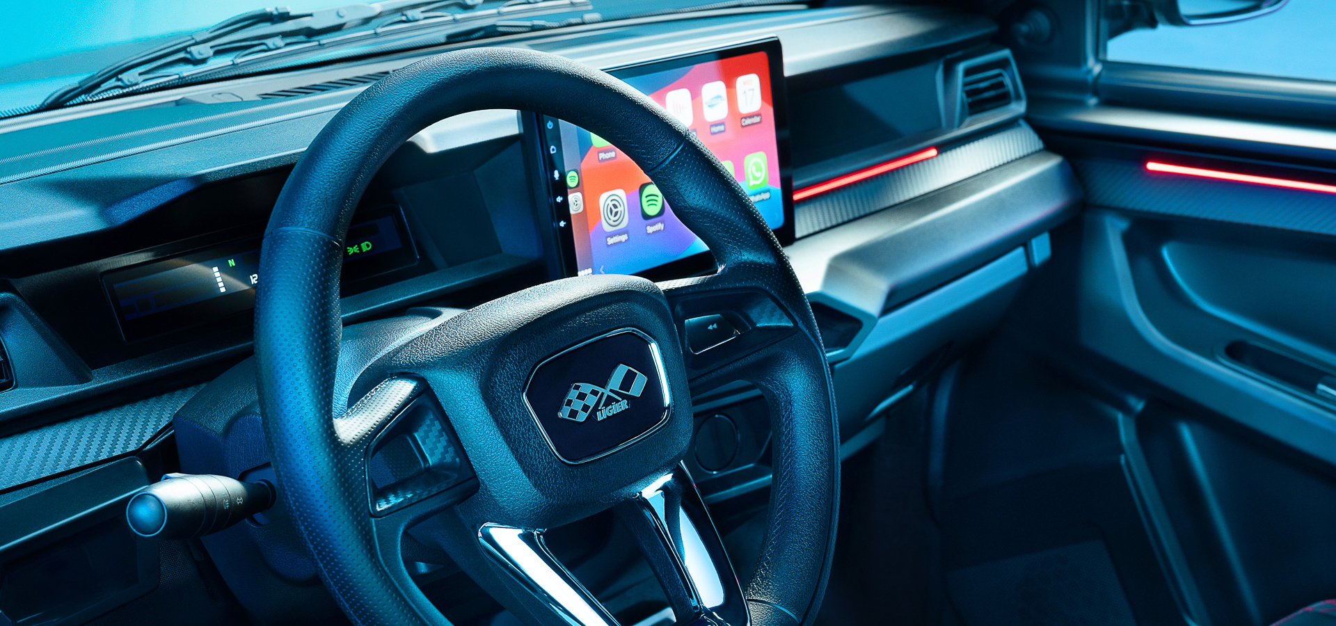 A l’intérieur comme à l’extérieur, la nouvelle Ligier JS50 est un véritable bijou de technologie. Elle intègre une tablette tactile 10’’, compatible Carplay Android Auto, pour une connectivité sans compromis.